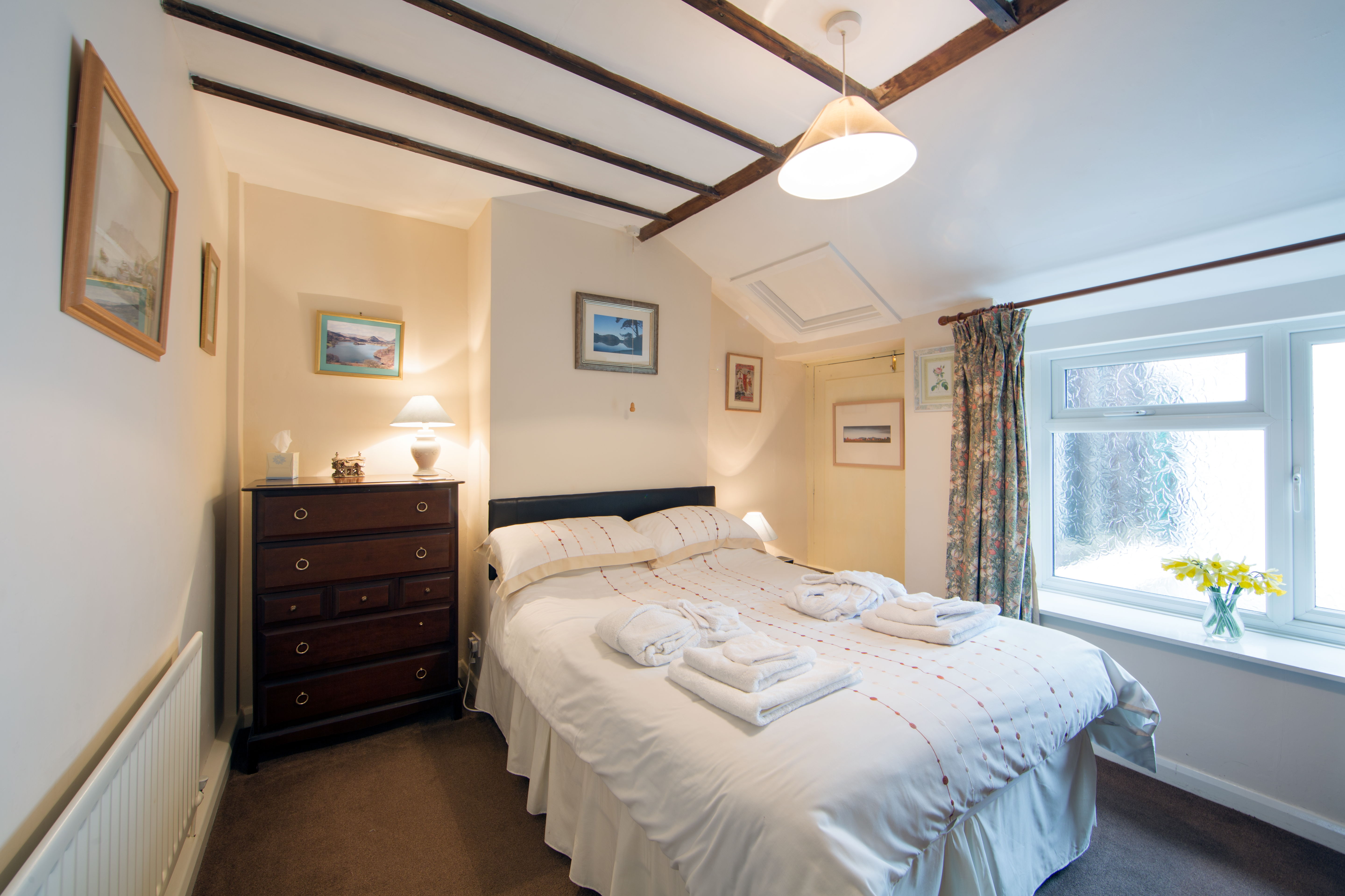 Our most luxurious room. Huge bedroom with super king-size (6ft.) bed, settee, TV / Radio. Luxurious en-suite bathroom with bath and shower. Mini-bar with soft drinks and fresh milk. Stunning views of the Skiddaw massif and the garden from the double aspect windows.